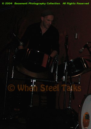 Noted steelpan player Andy Narell came to town with Sakésho and filled the air with music at New York's trendy, world-music oriented Satalla (with a seating capacity of about sixty). Patrons milled around pre-show taking the opportunity to chat with Sakésho members and also to enjoy Satalla's menu. Slated to begin at 10 PM, Sakésho's first session got underway just around 10:15.