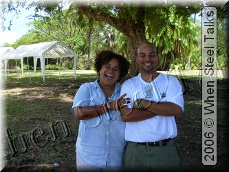 The competent team inclusive of all its coordinators, clearly had their hands full as they dealt throughout the day with numerous flight delays and other unforeseen travel-related complications. Present at Dominica's Melville Hall airport from 10:00 AM, the coordinators and organizers mobilized and placed on alert, a fleet of buses and trucks to provide the necessary ground transport from the airport to the hotels for the performing youths and managers. Mrs. Denise Hernandez, education officer for Trinidad's Pan Trinbago was on hand to provide assistance and guidance throughout the process. Moreover, Mrs. Hernandez took a personal interest in safe-guarding the welfare of all the participating youths and shielding them for any external distractions. She has brought a wealth of experience and commitment to the success of this event. The interaction and continued spirit of cooperation exhibited and displayed throughout this event by the participating steelband organizations, have taught these young people valuable life-long lessons. Moreover, it has set a precedent for future interaction between these organizations, as it is expected a number of these youths will be meeting each other many more times in different arenas and settings. As they continue their music interest in the future, the lessons learned by the participating youth makes this event a whopping success even before the first note has been struck. Contact the Dominica Steelband Association at: dominipan@hotmail.com - Ed -
