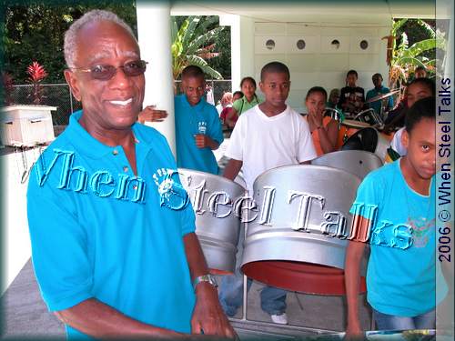 Desmond Waithe (l) with Tamana Primary Steelpan Workshop
