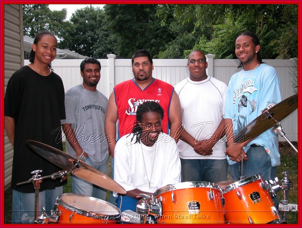 Date: 7.01.05 New York Steel Sensation Hailing out of Queens Village, New York's Steel Sensation has begun laying down tracks for their upcoming CD. The talented, well-respected and versatile steelpan music combo is adept at performing various music styles and genres. When Steel Talks caught up with the musicians as they were being recorded by Basement Recordings for their project. Steel Sensation joined the very short list of special steelpan projects entertained by and produced by Basement Recordings.