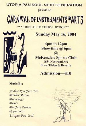 Crossfire Steel Orchestra - 3rd Annual Barbecue - also slated to perform, Radoes, Sonatas, CASYM & Caribbean Youth Panoramics, Pan Phonics and Dem Stars -- at the Brooklyn Athletic Club, Brooklyn, New York, USA - June 12, 2004 |