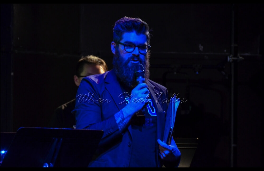 Josh Quillen addresses the audience at NYU Steel’s 2019 Spring Concert at the Frederick Loewe Theatre