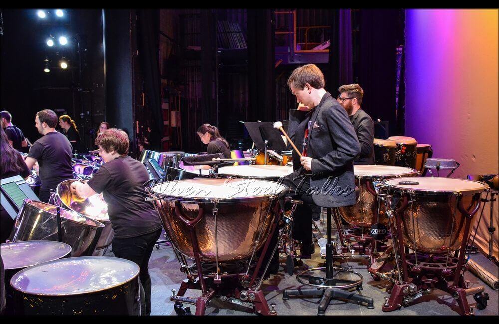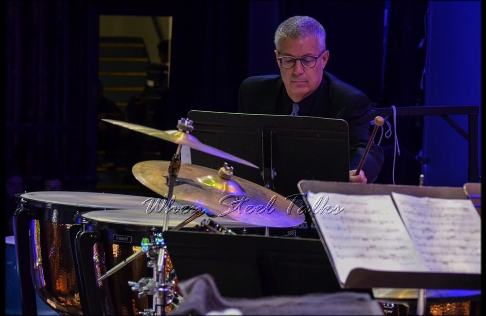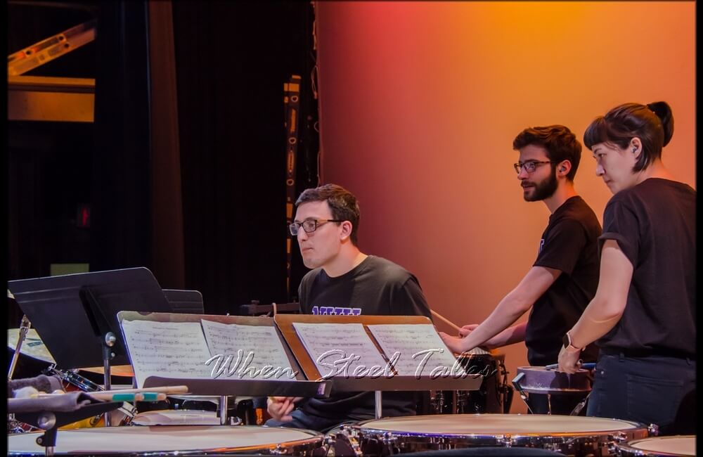 Dr. Jonathan Haas, right and Jeff Kautz, center - featured on timpani for NYU Steel’s 2019 Spring Concert