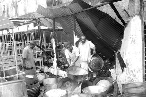 Members of the Solo Pan Knights Steel Orchestra salvage