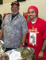 student Janice Perryman, Kentley Gill, a steel pan lecturer and