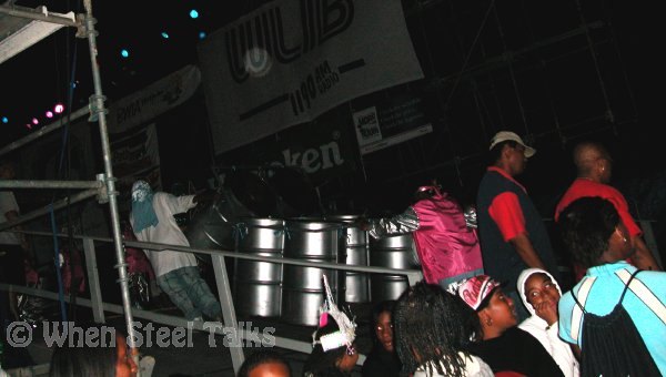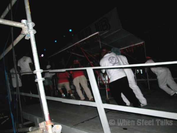 STEEP RAMP which challenged steel orchestras on their way up the stage...