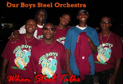 At age 28, Duvone Stewart is an extremely busy and serious-minded individual. He has made his mark on the national stage as a soloist and past champion of Pan Ramajay competitions. Stewart is no stranger to arranging, having taken both Merrytones Steel Orchestra and La Horquetta Pan Groove to the top in the small conventional steel orchestra and single pan band competitions, respectively, in the 2004 national Panorama. 2005 finds Duvone in Tobago, the isle of his birth, arranging for Our Boys Steel Orchestra, led by Pan Trinbago president Patrick Arnold. Our Boys has a large youth contingent, who come from one of Tobago's most well-known secondary educational institutions, Signal Hill Senior Comprehensive School. Stewart says that the school has a Pan Academy, and that they regularly use Our Boys' instruments for their own gigs, therefore the overlap is a natural one. This year the Tobago-based large conventional steel orchestra contender is playing Chris "Tambu" Herbert's Free Up, a hit from 1989 - the same selection chosen as Trinidad All Stars Steel Orchestra. Stewart says the decision to 'go back in time' was not his, but that he is enjoying his work. Because of this advantage, both in terms of time and his familiarity with the musical material, his initial arrangement has been finished since December. Since that time, there has been an influx of players in the band as the Panorama season heats up, and the arrangement is being augmented, enhanced and changed where necessary.