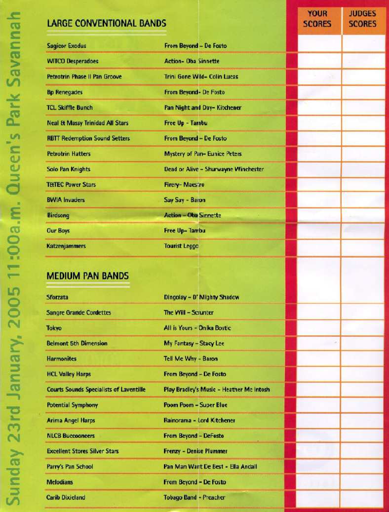 Trinidad Panorama Official 2005 Fans Score Sheet