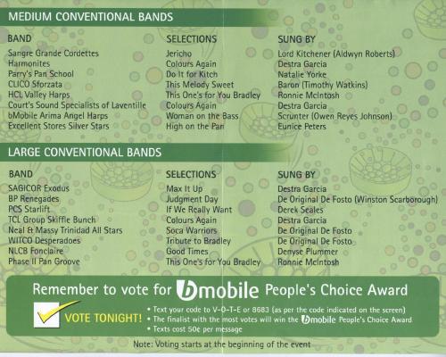 Trinidad Panorama Official 2006 Fans Score Sheet